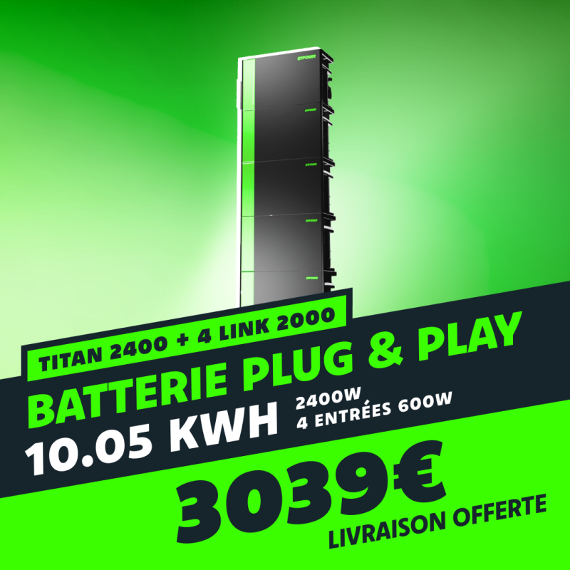 Puissance de sortie continue : 2400W (grâce à l'ajout des quatre batteries Link).