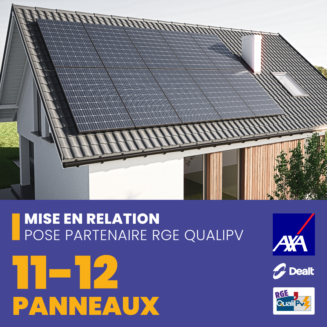 Service gratuit de mise en relation avec un installateur photovoltaïque indépendant certifié RGE QUALIPV, disposant d’une assurance décennale en cours de validité, pour un projet d’installation de 11 à 12 panneaux solaires photovoltaïques.