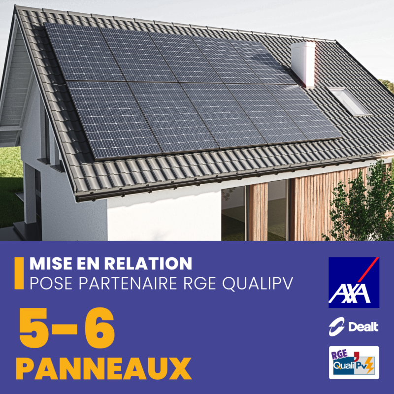 Service gratuit de mise en relation avec un installateur photovoltaïque indépendant certifié RGE QUALIPV, disposant d’une assurance décennale en cours de validité, pour un projet d’installation de 5 à 6 panneaux solaires photovoltaïques.