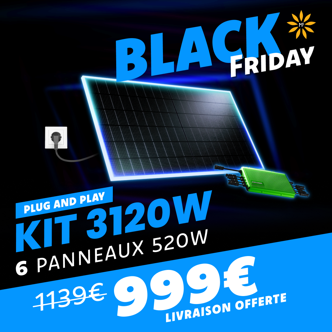 PLUG AND PLAY 3120W – 6 PANNEAUX IZYPOWER 520W + MICRO-ONDULEUR IZYPOWER 2000W ET 1000W