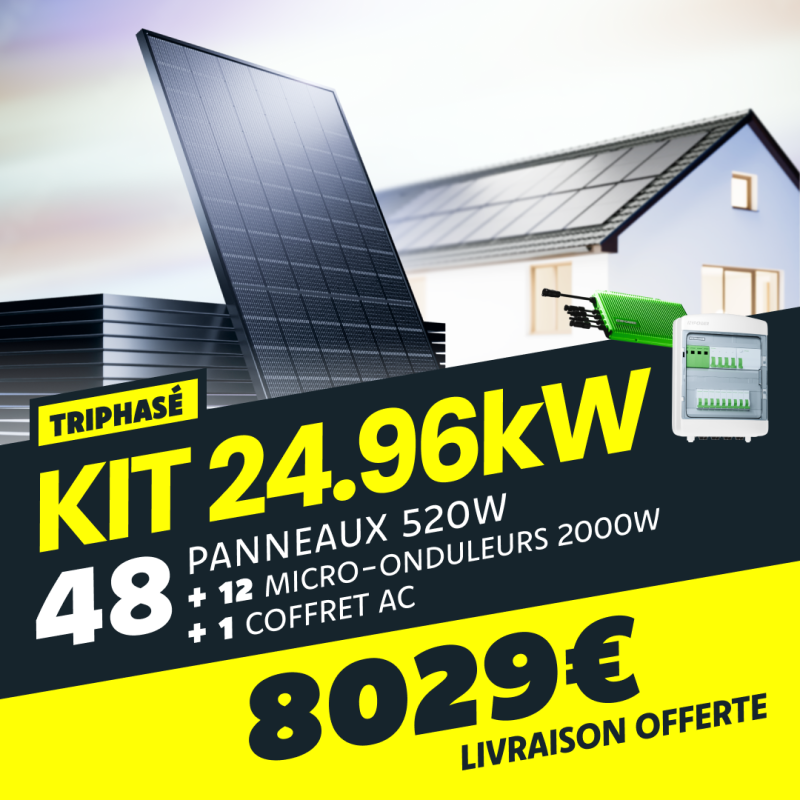 KIT TRIPHASÉ 24.96kW - 48 PANNEAUX 520W IZYPOWER - MICRO 2000W IZYPOWER