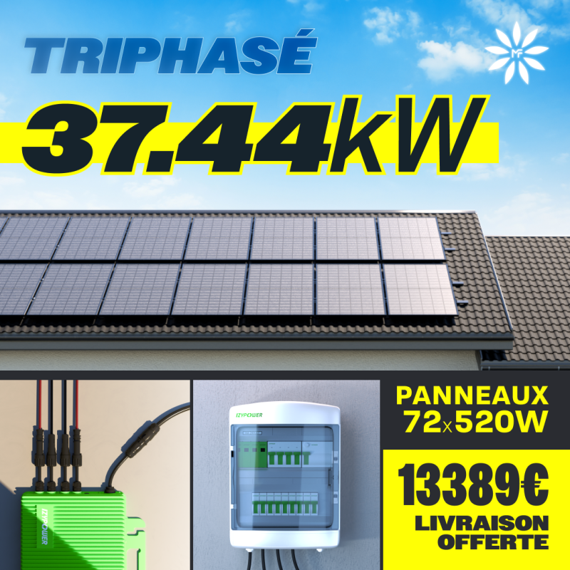 KIT TRIPHASÉ 37.44kW - 72 PANNEAUX 520W IZYPOWER - MICRO 2000W IZYPOWER